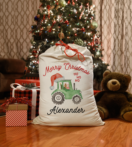 Red Tractor Santa Sacks