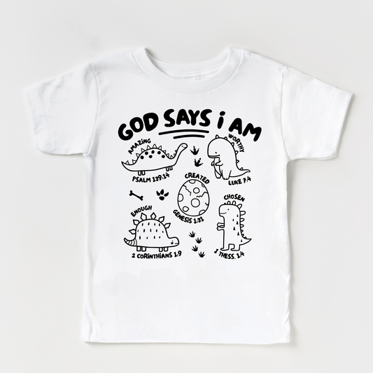 God says I am Dino Self Affirmation t shirt