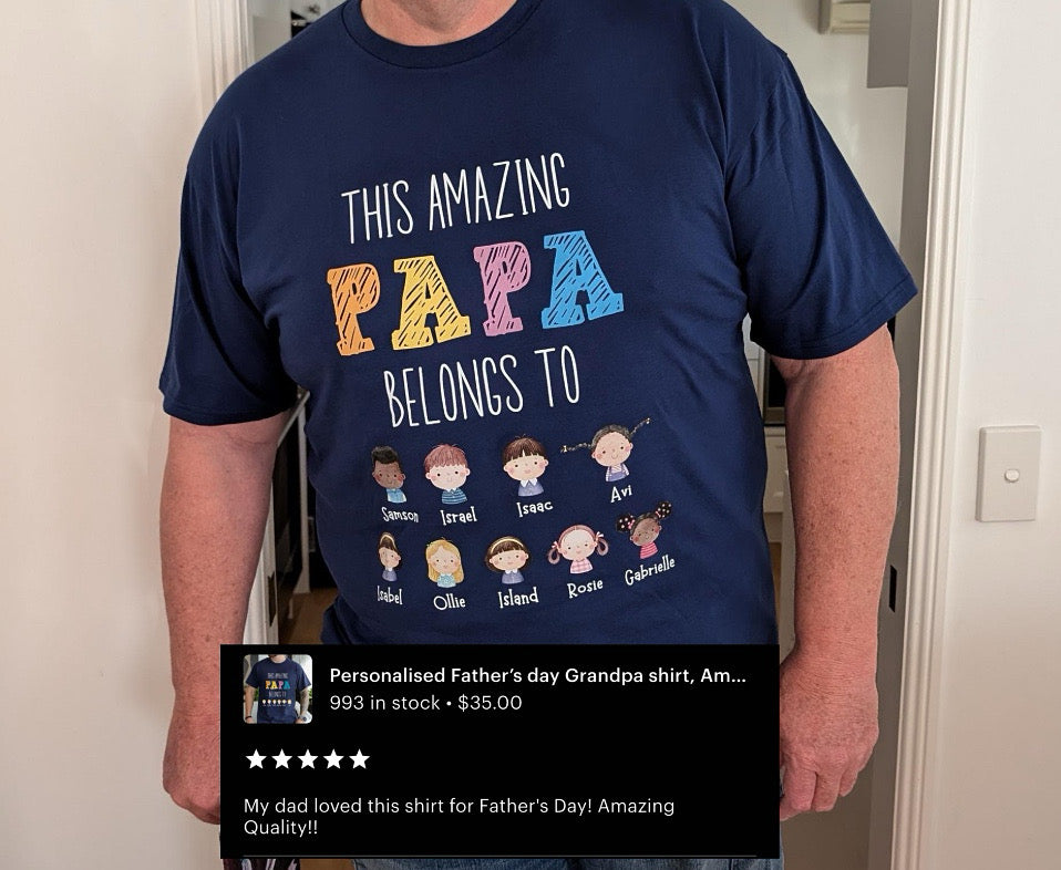 Celebrate Father's Day with our Amazing Dad Personalized shirt with kids' names. Let them feel connected as dad and daughter or son by gifting them with these super-cute dad t-shirts!