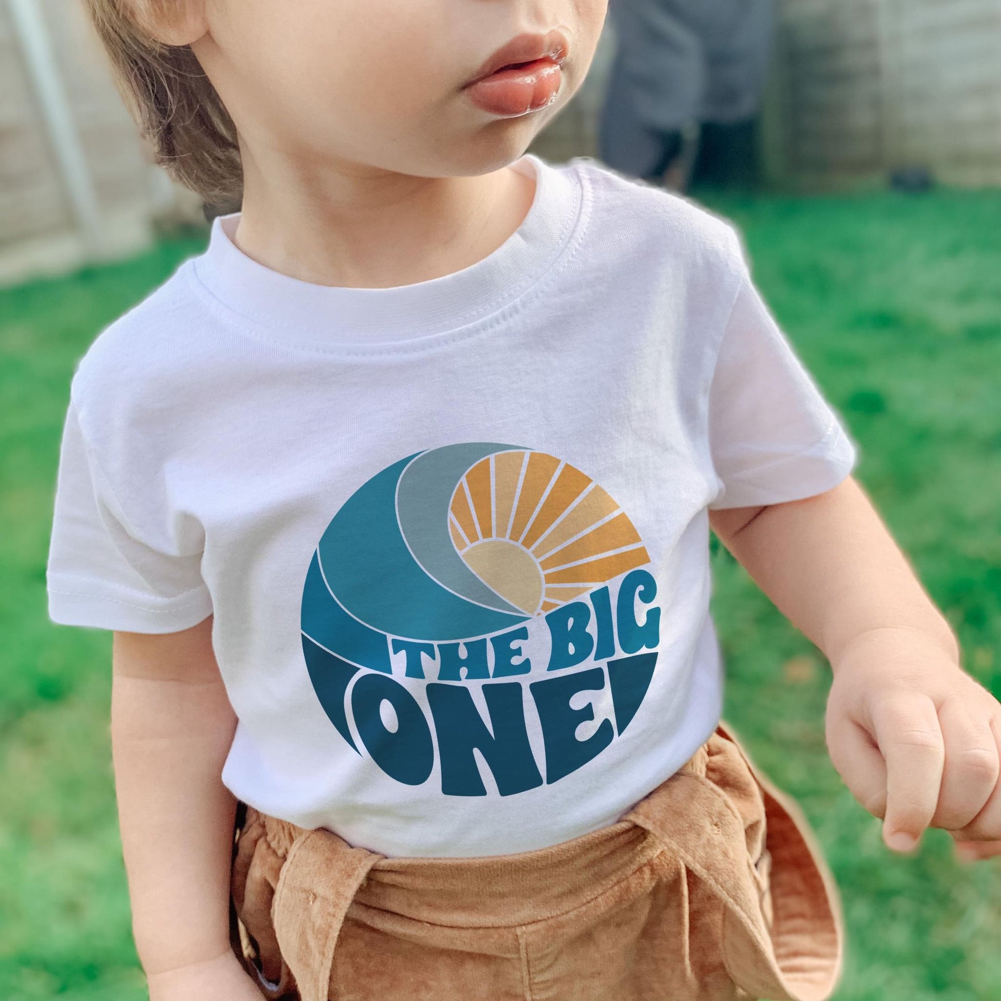 Celebrate your little one’s big day with our “The Big One!” Toddler T-shirt! These white and natural-colored t-shirts feature a vibrant and playful design of a colorful circle with the text “The Big One!” in the center. Made of soft and comfortable cotton material, this t-shirt is perfect for your toddler’s next birthday celebration!