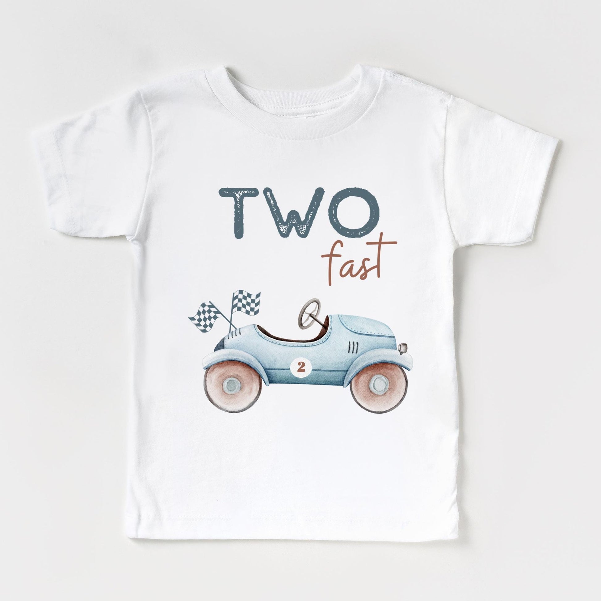 Introducing our Two Fast Light Blue Car birthday T-shirt – a fun and vibrant addition to your child's wardrobe. These white and natural tee features an exciting blue car design and the playful words "Two Fast" for a look that kids will love. Made with soft and durable materials, these t-shirts ensure both style and comfort for your little one. It's available in a range of sizes to suit kids of all ages. Let your child's imagination race with this awesome t-shirt – grab one today!