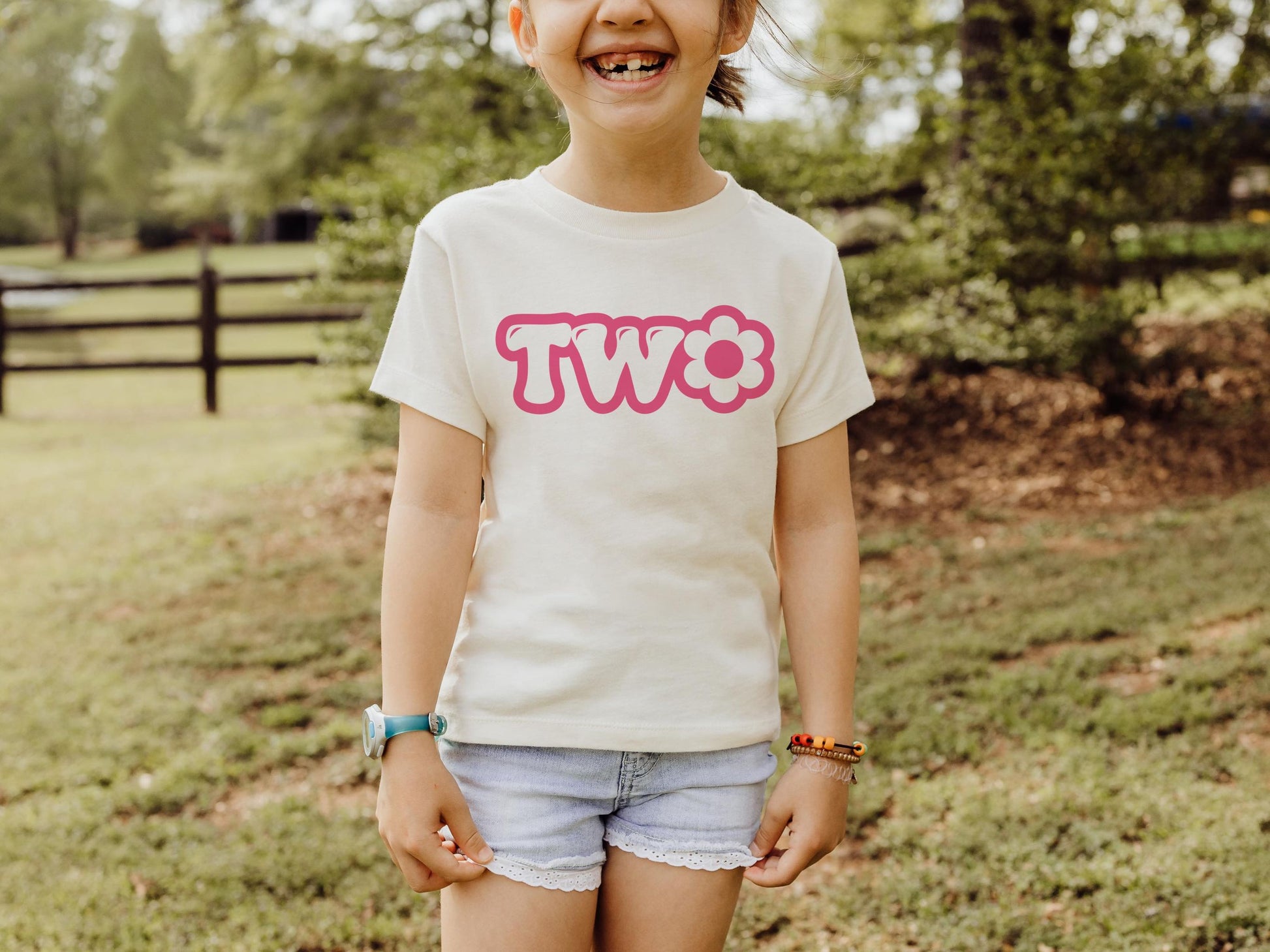 Celebrate your little one’s second birthday in style with our “TWO” toddler t-shirt. This tee features the word “TWO” written in vibrant pink bubble letters, making it the perfect outfit for a birthday celebration. Made from soft, high-quality cotton, this t-shirt ensures comfort for your toddler throughout their special day.
